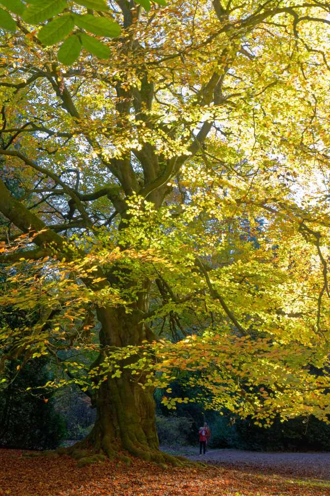 Ce hêtre pourpre resplendissant sous le soleil automnal, est la grande vedette du parc de par sa beauté/laideur et son imposante stature, il est photographié très fréquemment par les visiteurs.