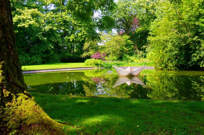 Petit bateau (imitation papier) sur l’eau du deuxième étang. (Juin 2024)
